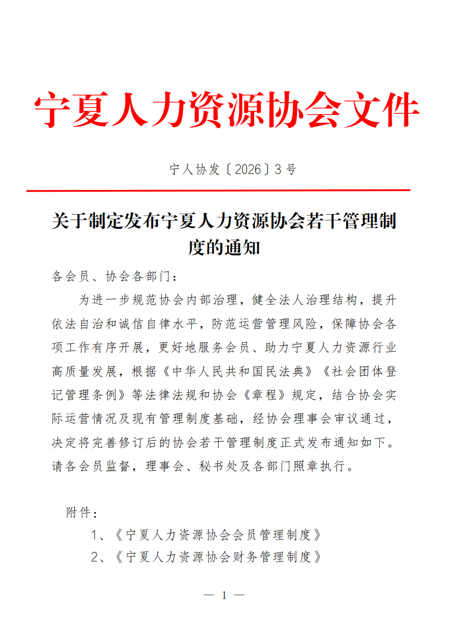 宁夏人力资源协会会员管理制度