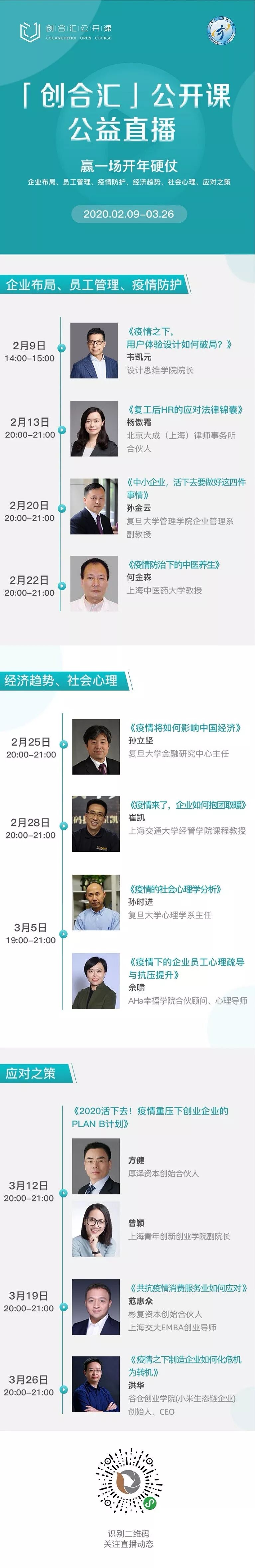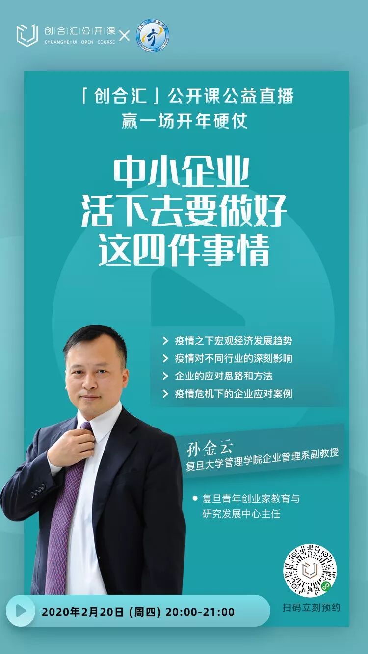 为了帮助广大会员单位和我区中小企业渡过难关,共同打赢这场抗疫攻坚战。宁夏人力资源协会 携手 创合汇 结合当前企业实际需求,联名打造系列公开课公益直播,力邀数位知名专家、学者、投资人进行相关热点系列公益直播授课。本次邀请到的是复旦大学管理学院企业管理系 孙金云 副教授为您带来《中小企业,活下去要做好这四件事》。无“距”学习, 逆境亦是机遇!2月20日20:00准时开播,欢迎扫码观看。