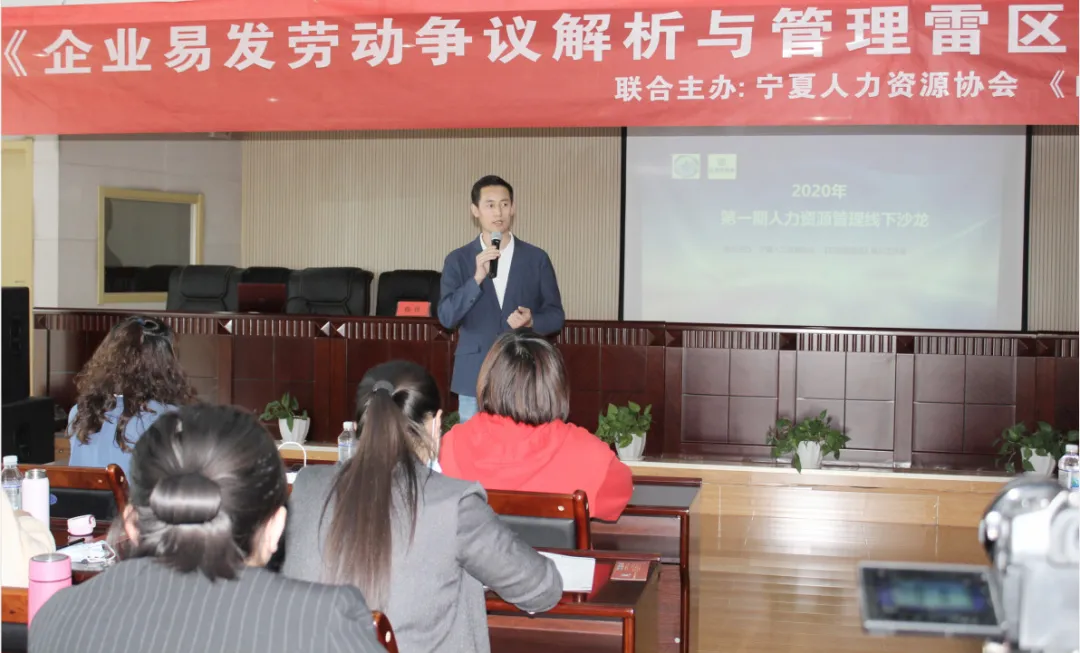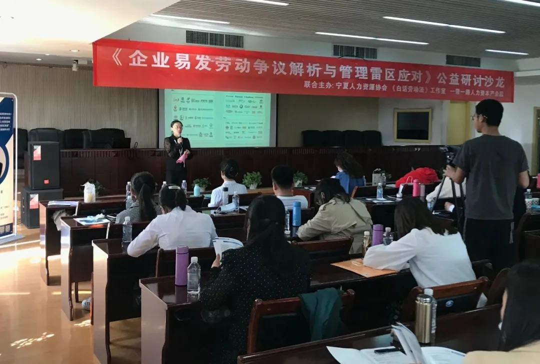 4月28日下午,由宁夏人力资源协会、“白话劳动法”银川工作室、阅海湾商务区“一带一路”人力资本产业园联合举办的《企业易发劳动争议解析与管理雷区应对》公益研讨沙龙在阅海湾中央商务区管理委员会3楼会议室举行。本次活动由【白话劳动法】银川工作室认证顾问薛燕主持,宁夏人力资源协会秘书长曹伟参加活动并作开场讲话。参加培训的有会员单位和相关企业人力资源部门负责人、员工关系管理和法务人员等70余人。